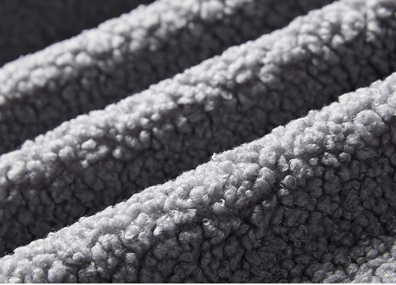 A hooded nubby pile fleece jacket with padded shoulders for an easy go to cold weather jacket. The zipper closure and welt pockets are all you will need to brave the winter season.